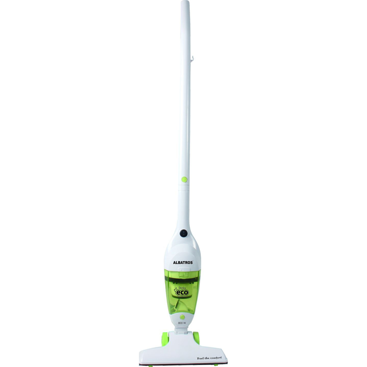 ASPIRATOR ALBATROS STICKY-ECO — 2 в 1 (ручной / вертикальный) — Тип Eco — Класс энергетической эффективности C — Щетка для ковров и полов — Маленькая щетка — Щётка щелевая — Место наматывания кабеля Потребляемая мощность 800 Вт Мощность всасывания 105 Вт Емкость пылесборника 0.8 л Тип выходного фильтра HEPA Длина шнура 5 м Цвет белый, зеленый Производитель Albatros
