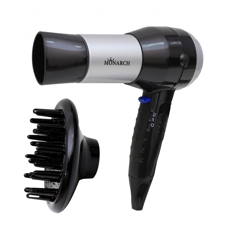 Monarch MR201 Тип: Фен для волос Количество режимов 3 Число скоростей 2 Мощность 2 кВт Ионизация нет Подача холодного воздуха есть Насадка концентратор есть Насадка диффузор есть Складная ручка нет Цвет: Черный/Серый Производитель MONARCH Модель MR201