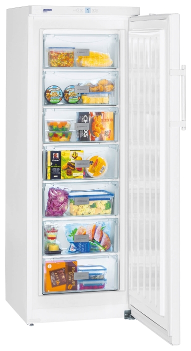LIEBHERR GP 2733 Тип морозильник-шкаф Цвет / Материал покрытия белый / пластик/металл Управление электронное Энергопотребление класс A++ (189 кВтч/год) Количество компрессоров 1 Количество камер 1 Количество дверей 1 Ручка с толкателем есть Габариты (ШxГxВ) 60x63x164.4 см Размораживание морозильной камеры ручное Автономное сохранение холода до 28 ч Мощность замораживания до 22 кг/cутки Индикация повышения температуры – световая и звуковая Дополнительные возможности суперзаморозка, индикация температуры Общий объем 232 л Объем морозильной камеры 226 л Другие функции и особенности Генератор льда отсутствует Возможность перевешивания двери есть Уровень шума до 40 дБ Климатический класс SN, T