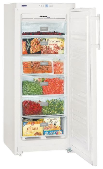 LIEBHERR GN 2323 Тип морозильник-шкаф Цвет / Материал покрытия белый / металл Управление электронное Энергопотребление класс A+ (264 кВтч/год) Количество компрессоров 1 Количество камер 1 Количество дверей 1 Ручка с толкателем есть Габариты (ШxГxВ) 60x63x144.7 см Размораживание морозильной камеры No Frost Автономное сохранение холода до 24 ч Мощность замораживания до 16 кг/cутки Индикация повышения температуры – световая и звуковая, открытой двери – звуковая Дополнительные возможности суперзаморозка, индикация температуры Общий объем 226 л Объем морозильной камеры 188 л Другие функции и особенности Генератор льда отсутствует Возможность перевешивания двери есть Уровень шума до 42 дБ Климатический класс SN, T