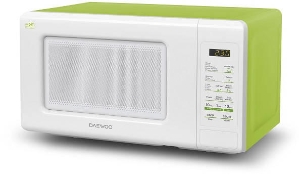 DAEWOO KOR-6S2BWG Тип: СВЧ соло Тип управления электронное Дисплей есть Объем 20 л Диаметр поворотного стола 28 см Открывание дверцы кнопка Мощность микроволн 800 Вт Количество уровней мощности 10 Ширина 44.9 см Высота 25.9 см Глубина 31.8 см Цвет белый, зеленый Вес 8.6 кг Производитель Daewoo