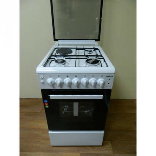 ZANETTI Z50 MWН Характеристики Варочная панель: газовая Духовка: электрическая Гриль: есть, электрический Электроподжиг: есть Противень: 2 шт. Решетка: 1 Лампа в духовке: есть Турбо Горелка: есть Количество конфорок: 3 газовых +1 электрическая Размеры (ШxГ): 50x60 Особенности Евро система газа,хромированые направляющие Цвет: белый