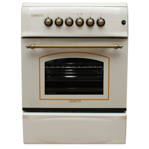 ZANETTI Z5000 E KR Варочная панель: газовая Духовка: электрическая Управление: механическое, переключатели: поворотные Часы: нет Размеры (ШхВ): 50x60 см Духовка Дверца: откидная Варочная панель Материал решеток: эмалированная сталь Рабочая поверхность: эмаль Количество конфорок газовых: 4 Электроподжиг: да Блокировка панели управления: нет Особенности Цвет: беж