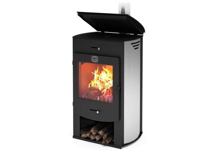ТАНГО Камин отопительный ТЕПЛОДАРдо 80 м3 / O дымохода 150• Диагональ стекла — 500 мм.• Компактные размеры для удобства установки в небольших помещениях.• Малый вес камина — не требуется фундамент для установки 4607151293723 Компактный дровяной камин "Танго" отапливает помещения до 80 куб.м., и за счет большой диагонали жаростойкого стекла (500мм) обеспечивает великолепный обзор огня. Компактный камин "Танго ПЛЮС" с варочной плитой обеспечивает прекрасный обзор огня (диагональ жаростойкого стекла 500 мм) и отапливает помещения до 80 куб.м Компактный корпус нового камина (970мм х 440мм х 610 мм) позволяет устанавливать его даже в небольших дачных домиках. Камин «Танго» обеспечивает прекрасный обзор огня, благодаря диагонали жаростойкого стекла 500 мм. Кроме того, этот камин является полноценным отопительный прибором: он обогревает помещения до 80 куб.м. Камин оборудован высокоэффективной топкой, система внутренних дефлекторов существенно повышает КПД и снижает расход дров. Благодаря применению качественных сталей, термостойкого покрытия и эффектной отделке из нержавеющей стали, камины производства «Теплодар» сохраняют превосходный внешний вид на протяжении всего срока службы. Мощность (max), кВт: 8 Объем отапливаемого помещения, м3: 80 Страна производства: Страна производства Россия Внешняя облицовка: Печи бывают в облицовке из камня, металла или под обкладку. нет КПД печи, %: - Футеровка топки: 111 вермикулит Стекло обзора пламени: 111 прямое Варочная плита: Плита для приготовления пищи есть Материал корпуса печи: сталь Теплообменник (водяной контур): нет Размеры и подключение Диаметр дымохода, мм: 150 Подключение дымохода: заднее Высота, мм: 970 Глубина, мм: 440 Ширина, мм: 610 Вес, кг: 91 Прочие характеристики Духовой шкаф: нет Система чистое стекло: есть Система длительного горения: есть