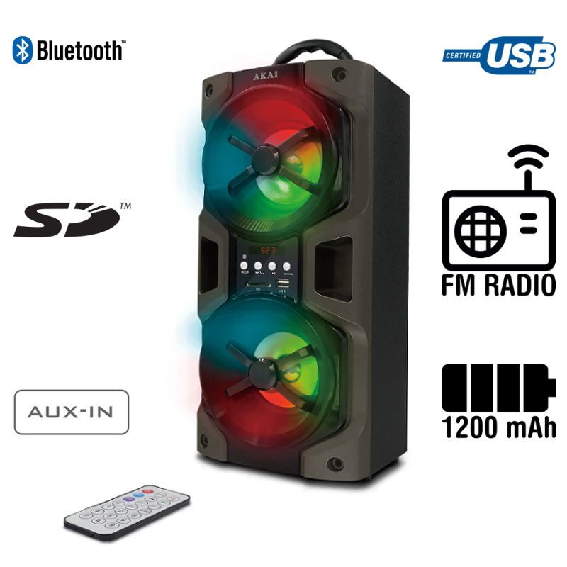 AKAI CEU7200-BT Суммарная мощность 10 Вт Максимальная воспроизводимая частота 20000 Гц Цвет серый, черный Питание аккумулятор Время работы 4 часа Интерфейсы AUX, USB, SD-card, Bluetooth, FM Габариты 192x420x164 мм Вес 1.8 кг Дополнительно LED дисплей, емкость аккумулятора 1200 мАч Производитель Akai