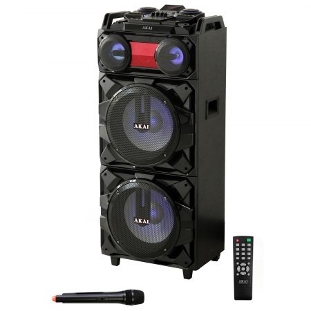 AKAI ABTS-T1203 Суммарная мощность: 90 Вт Максимальная воспроизводимая частота 20000 Гц Цвет черный Питание аккумулятор, сеть Интерфейсы AUX, USB, SD-card, Bluetooth, FM Габариты 440x385x1125 мм Вес 27.2 кг Дополнительно беспроводной микрофон Производитель Akai