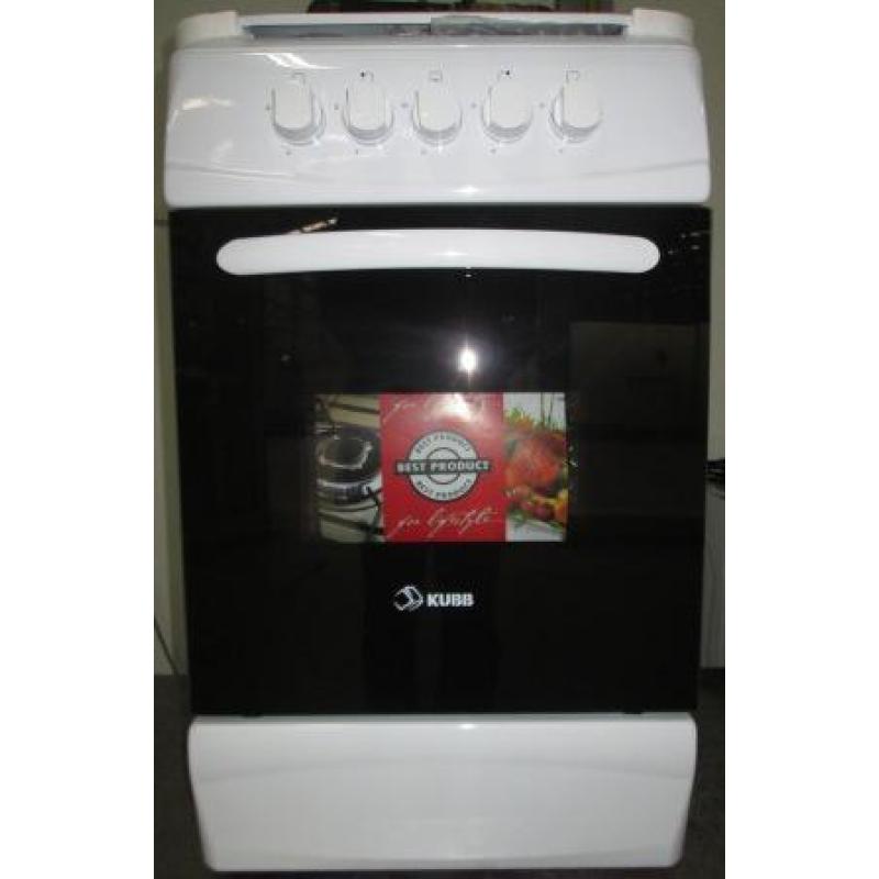 Газовая плита KUBB TG5640 LI WHITE газ плита, 4 конфорочная, 4 еврогорелки, свет в духовке, духовка газ, 85*50*60, крышка-стекло, электророзжиг, белая
