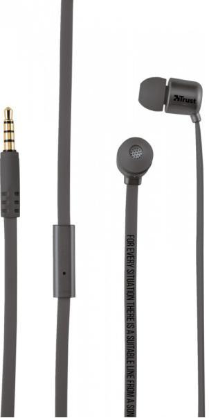 Earphones Trust UR Duga Space Grey, Mic on Flat cable,4pin1*jack3.5mm, 3 sets of rubber ear plugs- http://www.trust.com/en/product/20902-duga-in-ear-headphones-space-grey
