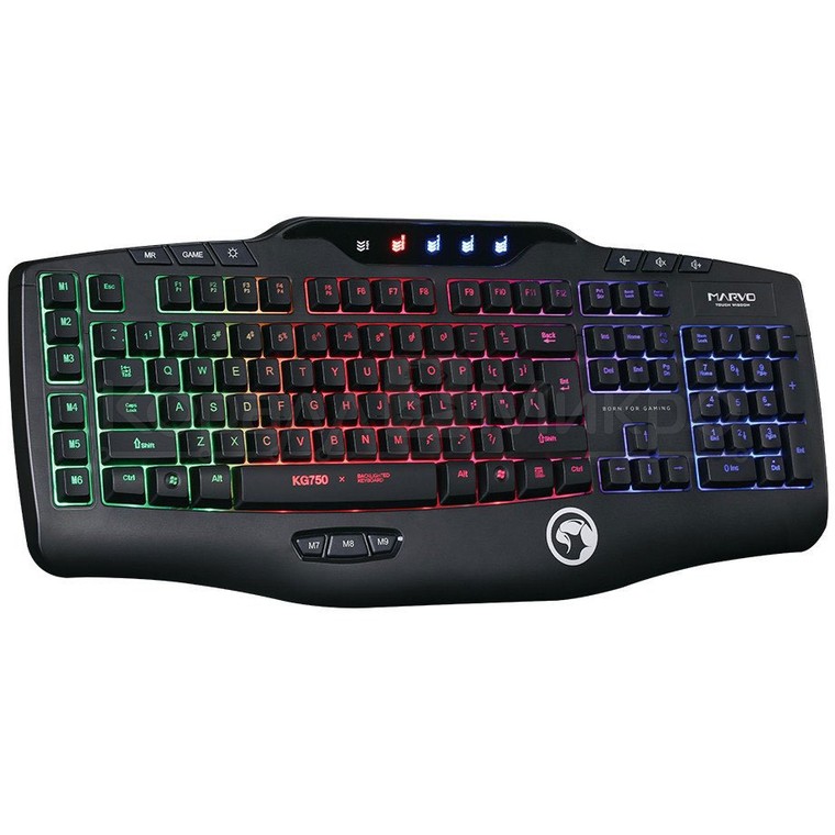 Клавиатура MARVO KG750, Black Производитель Marvo Модель KG750 Тип клавиатуры проводная Тип беспроводной связи не поддерживается Комплект поставки Клавиатура, инструкция, гарантийный талон Игровая клавиатураНет Подсветка клавиш Да Количество клавиш клавиатуры 119 Мультимедийные клавиши Да Цифровой блок клавиатуры Да
