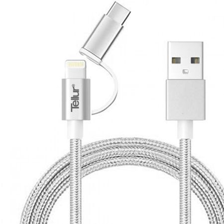 Tellur 3in1 USB-microUSB & lightning+adapt 1m, argitiu Tellur 3in1 USB-microUSB & lightning+adapt 1m, argitiu