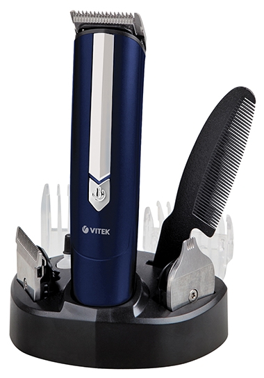VITEK VT-2550 Blue Тип набор для стрижки Питание автономное/от сети Роторный двигатель нет Время автономной работы 35 мин Время зарядки 8 ч Индикатор зарядки есть Самозатачивающиеся лезвия есть Материал лезвий нержавеющая сталь Число установок длины 11 Количество насадок 3 Стрижка бороды есть Комплектация подставка для зарядки Прорезиненные вставки на корпусе есть Дополнительная информация триммер 30 мм; триммер 40 мм; детальный триммер; расческа; масло; щеточка для чистки Настройка длины стрижки регулятором и сменой насадок Ширина ножа 40 мм