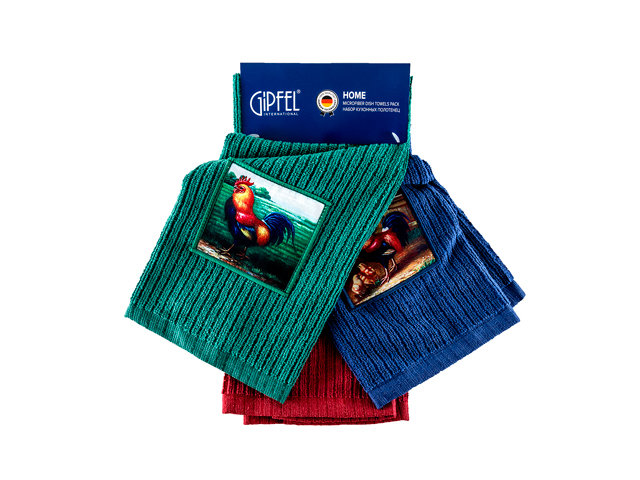 Полотенце GIPFEL GP-2705 (кухонное набор 38х63 cm(3 шт)) GIPFEL Набор кухонных полотенец HOME из микрофибры из 3шт, 38х63. Цвета в комплекте: красный, синий, зеленый. Материал: 61% композиционное микрофибровое волокно, 39% полиэстер