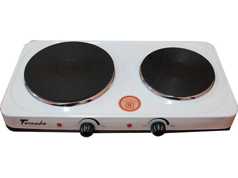 Плита настольная TORNADO EL-201 White (электрическая) Устройство: настольная плита Тип плиты: электрическая Тип: 220V Материал рабочей поверхности: эмаль Переключатели: поворотные Количество горелок: 2 Мощность: 1500W+800W Материал горелок: чугун Электроподжиг: есть Тип электроподжига: термостат Габариты (ШхГхВ): 46x24x5 см