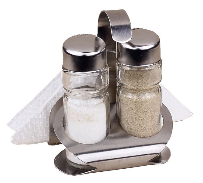 набор для специй GIPFEL GP-9107 - 3 предмета - размеры 8,6х8,2х11,6 см - стеклянные солонка, перечница - отделение для салфеток - стальная подставка