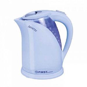 Электрочайник FIRST 005428-BU Автоотключение при закипании воды: + Внутренняя подсветка: + Вращение корпуса: 360° Материал корпуса: Пластик Мощность: 2200 Вт Нагревательный элемент: Скрытый: диск Объем: 2,0 л Терморегулятор: -
