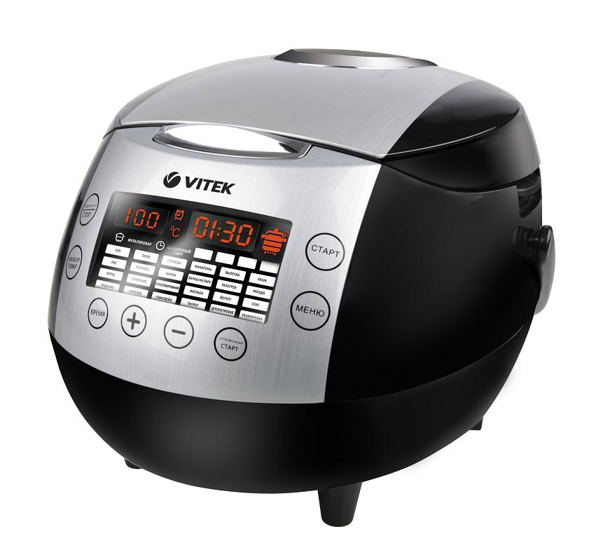 Мультиварка VITEK VT-4277 Функции Пароварка Йогурт Мультиповар Поддержание температуры Таймер отсрочки Тип Мультиварки Общий объём чаши 5 л Язык меню Русский Покрытие чаши Антипригарное Тип управления Сенсорное Количество автоматических программ 25 Ручные настройки Время Температура Программы приготовления Рис Каша Суп Борщ Варка/На пару Тушение Жарка Выпечка Холодец Паста Плов Томление Фондю Соус Варенье Консервирование Творог Йогурт Жульен Голубцы Глинтвейн Детское питание Мощность нагревательного элемента 900 Вт