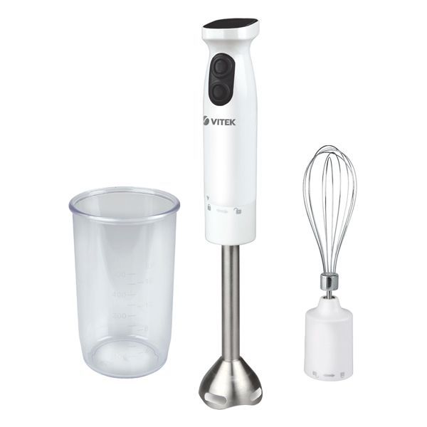 VITEK VT-3410 Это первый в мире блендер, оснащенный специальной насадкой-прессом для теста, а также набором трафаретов для печенья и крема! С помощью удобного пресса и двенадцати трафаретов можно всего за пару минут сформировать целый противень вашего любимого печенья всевозможной формы, а украсить готовый десерт поможет все та же насадка-пресс и одна из восьми насадок-трафаретов для кондитерского крема. Помимо этого VT-3410 можно использовать и как обычный блендерный набор: в комплект входит насадка-блендер с ножами из нержавеющей стали, венчик для взбивания и удобный мерный стакан. Высокая мощность 700 Вт позволяет VT-3410 справляться с приготовлением печенья, крем-супов или воздушной белковой пены за считанные минуты. Тип погружной Мощность 700 Вт Кол-во скоростей 2 Емкость стакана 500 мл Мини-измельчитель нет Дополнительные характеристики Колка льда нет Материал ножки блендера металл Комплектация насадка-блендер, венчик, мерный стакан, насадка-пресс (без формочки и кондитерской насадки), формочки для печенья (12 шт), держатель кондитерской насадки, кондитерские насадки (6 шт), инструкция Особенности Напряжение питания: 220-240 В ~ 50 Гц Материал корпуса: пластик Материал погружной части: нержавеющая сталь Турборежим Цвет белый Страна производитель: Китай