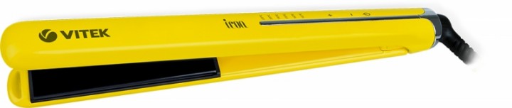 VITEK VT-2312 Добиться идеально гладких волос или создать роскошные локоны Вы можете при помощи одного прибора – щипцов для волос VT-2312 . В компактном устройстве предусмотрена уникальная технология покрытия Aqua Ceramic – она равномерно распределяет тепло по поверхности нагревательных пластин, предотвращая пересушивание волос. Одновременно с этим формула Aqua Ceramic в сочетании с оптимальной температурой «запечатывает» чешуйки волос, сохраняя таким образом их естественную влагу, красоту и здоровый блеск. Благодаря использованию технологии Floating plates плавно подвижные закрепленные на пружинах пластины обеспечивают равномерное распределение и давление на волосы, предотвращая их заламывание при укладке. Еще одна технология, которая используется в выпрямителе – PTC Heating. Она быстро стабилизирует температуру, не перегревая и не пересушивая волосы. Straight&Curl – технология, которой особенно обрадуются любительницы частой смены образов: благодаря данной технологии Вы можете при помощи выпрямителя как придавать волосам гладкость, так и завивать их в стильные локоны. Выпрямитель обеспечен удлиненными (110 мм) нагревательными пластинами шириной 25 мм, которые позволяют эффективнее выпрямлять волосы, и гарантируют быструю укладку. Добиться идеального результата в укладке позволяет быстрый нагрев прибора в течение 30 секунд до температуры, выбранной из шести возможных режимов в диапазоне 145-220 С - для жестких волос, для нормальных волнистых волос средней толщины и для тонких волос, чувствительных к высокой температуре. Даже если Вы забыли выключить выпрямитель, он отключится сам через 60 минут благодаря функции автоотключения. Для Вашего удобства устройство оснащено LED-дисплеем, который отображает текущую температуру пластин и позволяет упростить настройку устройства под определенный тип волос. Вращающийся резиновый шнур длиной 1,8 м максимально упрощает работу с выпрямителем, а защитный колпак позволит удобно хранить и перемещать устройство. Вид Щипцы Для создания гладкой прически Мощность 50 Вт Тип управления электронное Индикация нагрева LED Выбор температуры нагрева есть Диапазон температуры нагрева 145-220 °С Количество температурных режимов 6 Время нагрева 30 сек Материал покрытия керамика Размер пластин (ДхШ) 110х25 мм Режимы и функции защита от перегрева Особенности Электропитание: 220-240 В/ 50 Гц Плавающие пластины Технология PTC Heating Технология Straight&Curl Вращающийся шнур Комплектация защитный колпачок, инструкция Длина шнура 180 см Цвет желтый Страна производитель: Китай