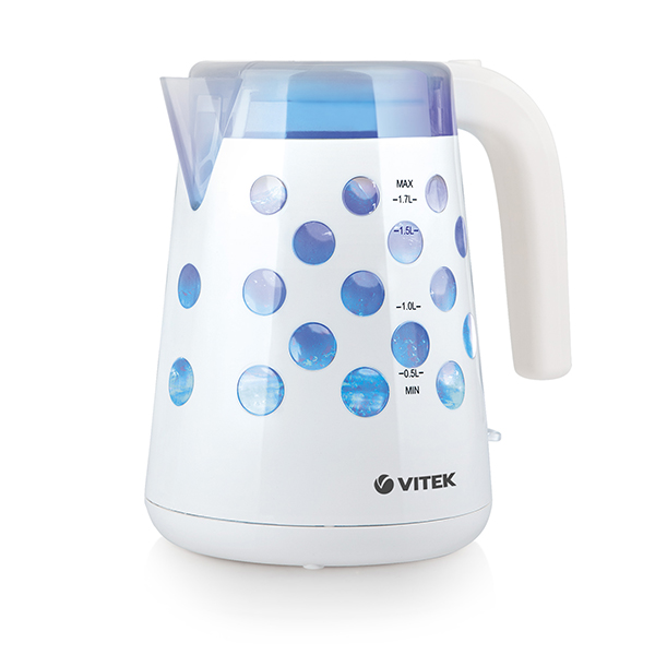 VITEK VT-7048 Блокировка включения без воды есть Индикатор уровня воды есть Индикация включения есть Контроллер Strix Материал корпуса термостойкий пластик Мощность 2200 вт Объем 1,7 л Отсек для хранения шнура есть Подсветка есть Рисунок на корпусе декоративный узор из прозрачного пластика Тип чайник Тип нагревательного элемента скрытый Фильтр есть