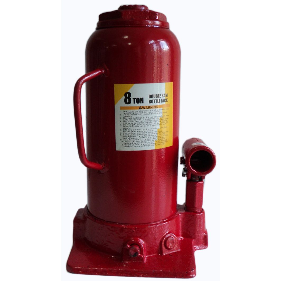 Домкрат 8-T -бутылка(TF-0802)/cric de ridicare Гидравлический бутылочный домкрат TF-0802 предназначается для подъема грузов (преимущественно автомобиля) весом до 8000 кг. Надежное изделие имеет привлекательную цену. TF-0802 очень компактный и не требует особого обслуживания при эксплуатации. Простое изделие достаточно удобно благодаря современным составляющим конструкции. Домкрат изготовлен преимущественно из инструментального металла - материала прочного, износостойкого и выносливого. Компактные размеры позволяют брать его с собой в длительные поездки, в которых периодически домкрат может пригодиться. Универсальный домкрат обязательно должен находиться в арсенале мастера или водителя. Работает устройство при температуре от -40 до +70 градусов.