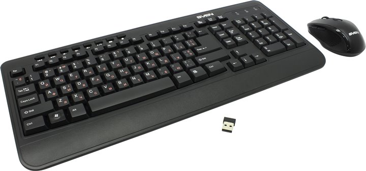 SVEN Comfort 3500, Black Компания SVEN объявила о начале продаж беспроводного набора Comfort 3500 Wireless. В комплект входят мультимедийная клавиатура и удобная компьютерная мышь – отличное решение для домашнего или офисного рабочего места в одной коробке. Мышь и клавиатура из набора SVEN Comfort 3500 Wireless отлично приспособлены к офисным реалиям. Им не страшны случайно пролитые напитки – специальная конструкция препятствует попаданию влаги внутрь и обеспечивает надежную защиту этих устройств от таких досадных неприятностей, как пролитый чай или кофе. Восемь мультимедийных клавиш клавиатуры обеспечивают быстрый доступ к домашней странице браузера, позволяют одним нажатием открывать почтовую программу и управлять медиапроигрывателем. Эргономичная конструкция клавиатуры и мыши обеспечивают высокий уровень комфорта при длительной работе за компьютером. Пятикнопочная мышь с покрытием Soft Touch оснащена боковыми клавишами для быстрой навигации вперед-назад и клавишами для переключения разрешения. Беспроводная клавиатура из набора SVEN Comfort 3500 Wireless имеет выдвижные ножки, благодаря которым пользователь может выбрать наиболее удобный для работы угол наклона устройства. Благодаря современным энергосберегающим технологиям SVEN Comfort 3500 Wireless расходует энергию максимально рационально - вам не придется слишком часто менять батарейки. Тип мультимедийная Технология связи беспроводная Совместимость с ОС Windows XP/Vista/7/8/10 Раскладка клавиатуры Рус/Укр/Eng Раскладка кириллицы Windows Количество клавиш 112 Количество клавиш быстрого доступа 8 Клавиши управления питанием есть Контакты клавиш мембранные с тактильной обратной связью Мышь оптическая, 5 клавиш, колесо прокрутки, 800/1200/1600 dpi Интерфейс USB Тип элементов питания батарейки типа ААА – 2 шт. и AA - 1шт. Наработка на отказ, нажатий свыше 20 000 000 (клавиатура) свыше 3 000 000 (мышь) Соответствие стандартам FCC, CE Размеры изделия, мм клавиатура: 437 ? 20 ? 180 мышь: 59 х 30 х 99 Вес, г клавиатура: 564 мышь: 86 Цвет чёрный