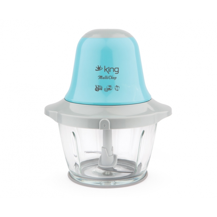 Измельчитель Maruntitor KING K 718 Мощность двигателя: 600 Вт Емкость: 1 л Разделочная чаша: стеклянная чаша Лезвие: Двусторонняя лезвия из нержавеющей стали Однокнопочная кнопка: Да Нескользящая основа: Да Цвет синий