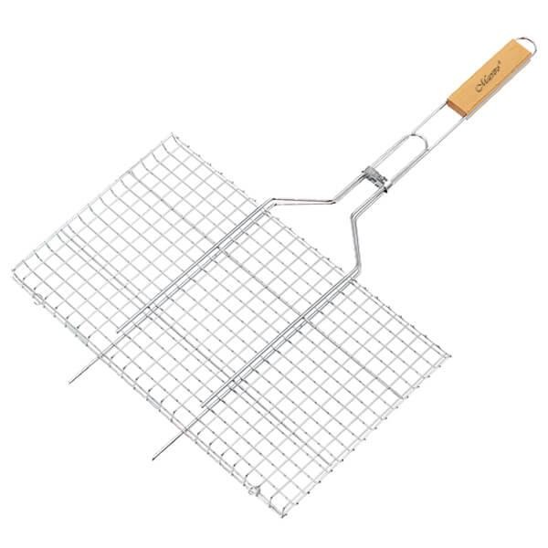 Maestro Mr-1005 Maestro Решетка-гриль MR1005 – это качественная и надежная решетка для гриля, позволяющая готовить на углях самые разнообразные продукты. Модель создана из высококачественной стали, а специальное антипригарное покрытие обеспечивает легкий уход за решеткой. Благодаря регулируемой высоте Вы сможете максимально удобно готовить самые разные продукты, а наличие кольца фиксатора исключит вероятность выпадения продуктов на горячие угли. Также стоит отметить, что Maestro Решетка-гриль MR1005 имеет специальные усики для надежной фиксации решетки на мангале, а эргономичная деревянная ручка позволяет уверенно держать данное приспособление в руках и создавать различные манипуляции во время приготовления. Рабочая зона, размером 260х450 мм, дает возможность за один раз приготовить достаточное количество еды на несколько человек. Производитель: Maestro Тип: Решетка для гриля с антипригарным покрытием Описание: Антипригарное покрытие, не дает возможности прилипать к прутьям. Удобная ручка помогает легко переворачивать решетку, не обжигая рук. Конструкция решетки обеспечивает устойчивое положение на мангале. Регулируемая высота решетки, удобна для использования различных продуктов. Размер, мм: 260х450 Вес, г: нет данных