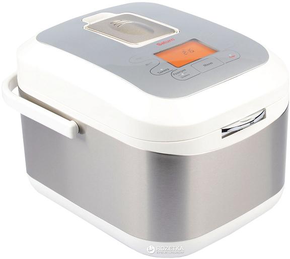 SATURN ST-MC9187Touch Мультиварка ST-MC9187 Touch от компании Saturn с объемом чаши в 5 литров* – станет для вас надёжным помощником. Это практичная, компактная, современная, стильная модель с производительной мощностью 860 Вт. Оснащена сенсорным меню и имеет удобный LED-дисплей. Выполнена эта модель из качественного металла с пластиковыми вставками белого цвета. Простота в использовании Управление мультиваркой происходит с помощью простой сенсорной панели, через которую вы непосредственно сможете выбрать любую функцию или программу. Готовить в мультиварке очень удобно, если не успеваете приготовить сегодня, загрузите ингредиенты и установите отсрочку старта, это одна из полезностей модели, которая предлагает возможность отстрочить время начала приготовление на 24 часа. Функциональность модели Мультиварка обладает широкой функциональностью, и имеет 15 программ для автоприготовления, чаша покрыта керамическим напылением, мыть и чистить мультиварку благодаря этому очень просто. Вы сможете запросто управлять мультиваркой, устанавливать свое время приготовления и изменять его, так как вам нужно. Самое время забыть о бесконечном мытье посуды, которая собирается в процессе готовки, и приобрести мультиварку. В комплекте сидут не менее полезные аксессуары — ложка для риса, ложка для супа, решетка для готовки на пару, и мерный стакан. Функции Пароварка Йогурт Поддержание температуры Таймер отсрочки Тип Мультиварки Язык меню Русский Общий объём чаши 5 л Покрытие чаши Керамическое напыление Тип нагрева ТЭН-нагрев Тип управления Сенсорное Количество автоматических программ 15 Ручные настройки Время Программы приготовления Рис, молочная каша, суп, пароварка, жарка, тушение, паста, йогурт, выпечка, фритюр, быстрое приготовление, медленное тушение, запекание, варение, разогрев