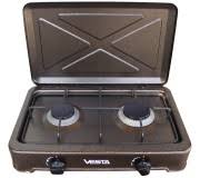 Настольная плита Vesta TT2-W Выключатели поворотные Цвет: коричневый тип: Настольная газовая плита Количество горелок 2 Тип управления механический Рабочая область эмаль