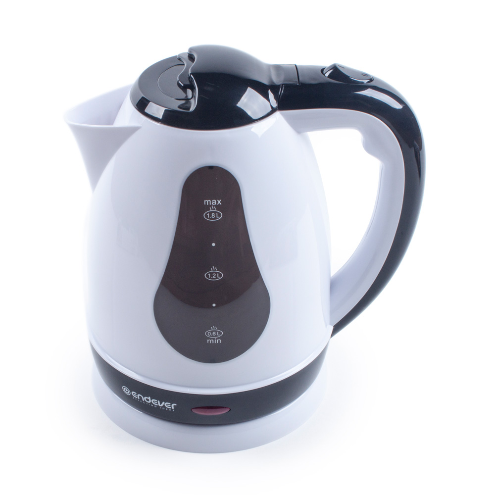 Электрочайник Endever Skyline KR-352 Электрочайник Endever Skyline KR-352 представляет собой компактный и удобный кухонный прибор. Такой поместится даже в самую маленькую кухню. Корпус сделан из белого пластика, а дополнительный цвет – черный. Максимальный объем составляет 1.8 л, а мощность достигает 2100 Вт. И объем, и мощность помогают быстро вскипятить достаточно большой объем воды. Нагревательный элемент представлен дисковым нагревателем из нержавеющей стали. В носике Endever Skyline KR-352 находиться фильтр. Благодаря ему Вы можете не беспокоиться о том, что накипь может попасть в чашку. В чайнике присутствует шкала уровня воды, а также индикатор включения. Длина сетевого шнура равна 75 сантиметрам, что отлично пригодится, если в Вашей кухне стол стоит далеко от розетки. Из особенностей модели можно выделить автовыключение при закипании и при полном отсутствии воды в чайнике, блокировку крышки, а также эргономичную ненагревающуюся ручку, что будет достаточно удобно, ведь Вы сможете сразу же налить горячую воду в чашку. Основной цвет черный Объем (л) 1.8 л Мощность (Вт) 2100 Вт Материал корпуса пластик Шкала уровня воды есть Вращение на подставке есть