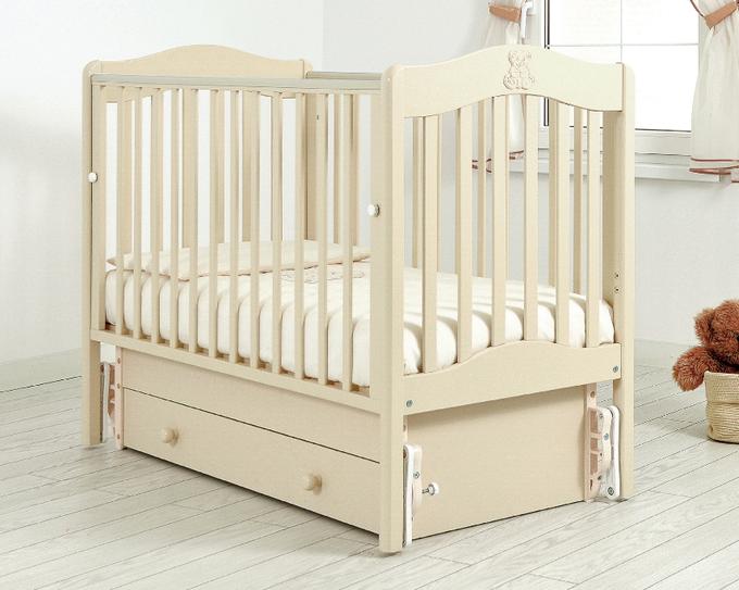 GANDYLYAN Кроватка с универсальным механизмом маятникового качания "Ванечка" Производитель Гандылян (Россия) Россия; Материал ДСП, Массив бука; универсальный маятник; 2 уровня ложа; опускаемая боковина на фиксаторах (можно снять); ящик для белья (закрытый); размер матраса 120*60 см