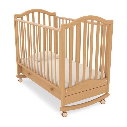 GANDYLYAN Кроватка на колесах с планкой для качания и ящиком «Лейла» Детская кроватка GANDYLYAN Лейла качалка Классический дизайн и практичная надежность - эта кроватка-качалка Лейла от компании Гандылян соединила в себе лучшие качества. Экологически чистая и прочная древесина бука покрыта безвредным лаком на водной основе, а по верхнему краю боковин еще и упрятана под силиконовые защитные накладки. Ну и, конечно же, никаких острых углов и деталей! Кроватка на колесиках устойчива и мобильна, а сняв их, вы получите прелестную качалку, в которой так любят засыпать маленькие детки. Ну а когда ребенок подрастет, опустите ложе кроватки на нижнюю из двух позиций, обеспечив безопасную глубину. Передняя панель также варьируется по высоте, опускаясь и фиксируясь специальным замком, и при необходимости полностью снимается. Для пеленок, постельного белья или игрушек найдется просторный ящик под днищем кроватки! Характеристики выдвижной ящик для белья древесина обработана экологически чистым лаком отсутствуют острые углы (есть силиконовые накладки) боковое ограждение оснащено замком и регулировкой высоты два уровня ложа по высоте колеса для удобства перемещения планка для качания Габариты упаковки (ДхШхВ): 124x75x17 Габариты (ДхШхВ): 127x73x107 Количество положений дна: 2 Ящик для белья: Да Материал корпуса: Дерево Возраст ребёнка: С рождения Размер матраца (ДхШ), см: 120х60 Модель (артикул поставщика): К-2002-17в Страна производителя:Россия