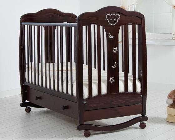 GANDYLYAN Кроватка на колесах с планкой для качания и ящиком «Мишель» К. СВ. Орнаментальная конструкция кроватки-качалки со съемными колесами «Мишель» Гандылян имеет округлые формы, что придает ее дизайну мягкость и нежность. В декоре кроватки присутствуют кристаллы Swarovski, украшая кроватку искристым блеском. Кроватка оснащена дугами-полозьями для раскачивания и двумя парами колес на ножках, что облегчает ее перемещение в комнатном пространстве. Дуги-полозья наделены ограничителями качания, делающими его амплитуду безопасной для ребенка. Высокоглянцевое покрытие поверхностей кроватки защищает кожу малыша от травмирования. Используемый для покрытия лак имеет водорастворимую основу и безопасен для младенца. Прозрачность лака подчеркивает уникальную фактуру буковой древесины. Опускающаяся передняя стенка облегчает контакт матери с ребенком и имеет надежный механизм фиксации. Дно кроватки может быть установлено в двух положениях по высоте. Вместительный ящик для белья в основании выполнен из ДСП и снабжен шариковыми направляющими. Верхние перекладины покрыты нетоксичными силиконовыми накладками, играющими роль детских «грызунков». Тип кроватка классическая Модель Гандылян «Мишель» К-2006-2 Материал ДСП, массив бука Размер матраса в кроватку (ДхШ) 120х60 см Конструкция Опускающаяся стенка есть Механизм качания продольные полозья