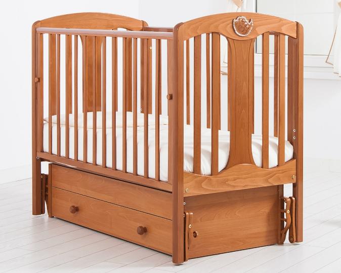 GANDYLYAN Кроватка с универсальным механизмом маятникового качания «Диана» К. СВ. Конструктивная особенность детской кроватки «Диана» Гандылян — в оснащении ее универсальным маятниковым механизмом, позволяющим раскачивать ложе новорожденного в направлении «сбоку-набок» и «голова-ножки». Направление выбирается при сборке кроватки. Мягколинейные формы изысканного дизайна этой кроватки зрительно увеличивают воздушное пространство вокруг нее. Красивое детское ложе с нежным названием сделает сон ребенка комфортным и спокойным, украсив его спальню. Уникальное свойство маятникового механизма в том, что он приводит кроватку в движение даже от самого незначительного толчка. Поэтому Вам не обязательно тратить массу времени на укачивание ребенка, ведь малыш, двигаясь в кроватке, способен сделать это сам. Амплитуда движений маятника ограничена. Если же качание кроватки нежелательно, специальный фиксатор сделает ее неподвижной (не забывайте пользоваться им во время бодрствования ребенка!). Корпус кроватки изготовлен из массива натурального кавказского бука, что гарантирует долговечность изделия. Конструкция не имеет острых углов, а поверхности всех деталей отшлифованы до зеркального блеска. Лак, покрывающий кроватку, безопасен для здоровья малыша, а благодаря своей прозрачности, он подчеркивает красивую фактуру буковой древесины. Передняя стенка кроватки имеет способность опускаться, облегчая родителям контакт с младенцем. Дно кроватки может быть установлено в двух положениях по высоте, что обеспечивает безопасность подросшему малышу. Вместительный ящик для белья в основании выполнен из ламинированного ДСП и снабжен шариковыми направляющими. Самыми важными свойствами АБС-пластика, из которого изготовлены накладки на верхние перекладины кроваток, являются его нетоксичность, эластичность и стойкость к каким-либо видам воздействия. Поэтому, эти накладки выполняют назначение защиты поверхности кроватки и десен малыша. Доступно 6 цветовых вариантов изделия. Производитель GANDYLYAN Россия Материал дсп, массив бука Размер матраса в кроватку 120х60 см Съемная боковина да Защитные накладки на боковинах да Количество уровней ложа 2 Ящик для белья да Тип качания кроватки маятник универсальный Внешние габариты (ДхШхВ) 124x70x103 см Габариты упаковки (ДхШхВ) 126x72x18 см Вес товара с упаковкой 33 кг Общий объем упаковки 0.155 м3