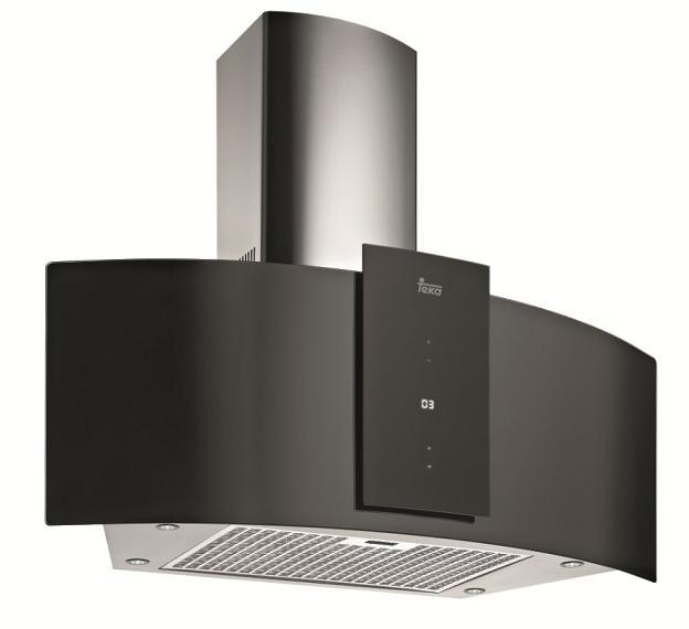 Вытяжка TEKA DU 985 Hota semineu, 90 cm, Cristal negru, Forma panoramica,Motor EcoPower,3 trepte putere + 1 Turbo,Touch Control ,Afisaj de culoare alba,4 LED-uri,Panou din inox,Panou interior usor de curatat,Timer,Indicator pentru saturarea filtrelor,Free Outlet: