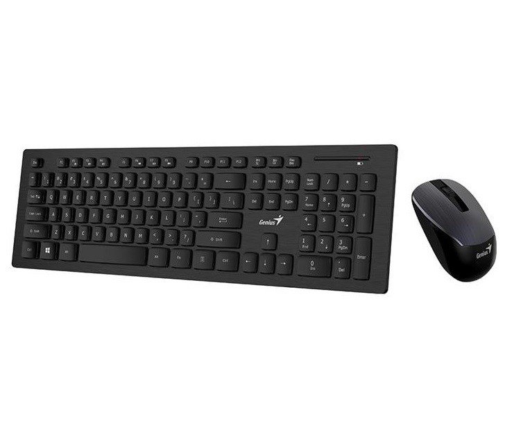 Клавиатура+мышь Genius SlimStar 8008 Genius SlimStar 8008 - набор, состоящий из смарт-клавиатуры и беспроводной мыши. Умная клавиатура Genius повышает вашу производительность, реализуя большинство функций одним нажатием клавиши. Индивидуальные настройки клавиатуры могут быть сохранены как профили и автоматически переключаться между запущенными приложениями. Вы можете сделать гораздо больше одним нажатием кнопки. Клавиатура имеет пылезащищенный дизайн, а также обеспечивает комфортную и тихую печать с точными срабатываниями. Беспроводная мышь может работать на любой поверхности, включая стекло обеденного стола, кожу автосидений или ваши джинсы. Подсветка нет Количество клавиш клавиатуры 104 Механизм клавиш мембранная Количество кнопок мыши 3 Тип мыши оптическая светодиодная Режимы работы датчика мыши, dpi 1000 Беспроводное подключение есть