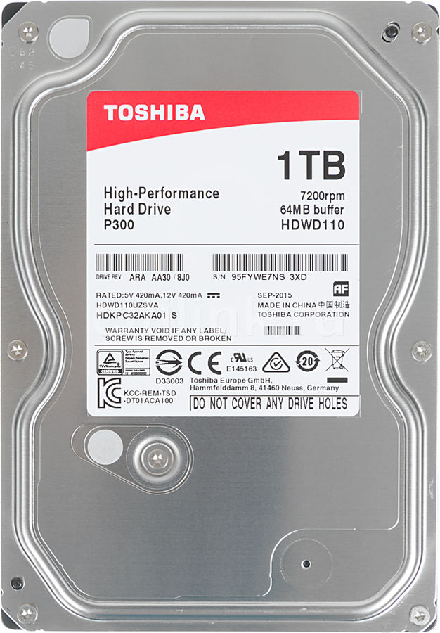 3.5" HDD 1.0TB Toshiba HDWD105UZSVA P300, for Desktop, 7200rpm, 64MB, SATAIII жесткий диск для настольного компьютера объем 1.0TB форм-фактор 3.5" интерфейс SATA 6Gb/s