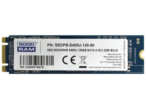 M.2 SATA SSD 120GB GOODRAM S400U, Interface: SATA 6Gb/s, M.2 Type 2280 form factor, Sequential Reads: 550 MB/s, Sequential Writes: 530 MB/s, Controller Phison S11, NAND TLC, Bulk