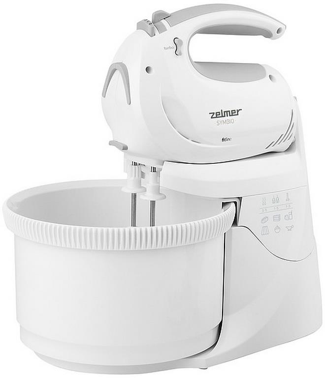 Миксер Zelmer ZHM1264S Тип ручной/стационарный Макс. потребляемая мощность, Вт 400 Материал корпуса пластик Материал чаши пластик Длина сетевого шнура, м 1,5 Количество скоростей 5 Турборежим да Количество насадок 3 Насадки в комплекте насадка для взбивания, для теста, насадка для приготовления пюре Венчик для взбивания 2 Крюк для теста 2 Цвет белый Вес, кг 2,3 Доп. особенности чаша 3 л