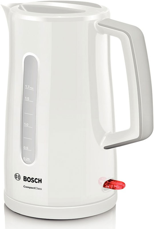Электрочайник Bosch TWK3A011 Безопасность в 3 измерениях: автоматическое отключение, защита от протечек и перегрева, светодиодная индикация. Легко мыть благодаря съемной крышке и широкому отверстию во время открытия. Тип обычный Мощность 2400 Вт Объем 1,7 л Тип нагревательного элемента скрытый (диск) Дополнительные характеристики Индикатор уровня воды есть Материал корпуса пластик Защита от перегрева есть Функции автоматическое отключение при закипании Подогрев до заданной температуры нет Отсек для кабеля есть Особенности Напряжение/частота: 220-240 В/50-60 Гц Длина кабеля: 80 см Простое наполнение водой непосредственно через носик Широкое открытие крышки для более удобной чистки Безопасная система блокировка крышки: прибор работает только при закрытой крышке Вращение на подставке на 360 градусов Резиновые ножки Аксессуары съемный фильтр от накипи Габариты в упаковке 28,5х23х19 см Вес 1,1 кг Цвет белый/серый Страна производитель: Китай