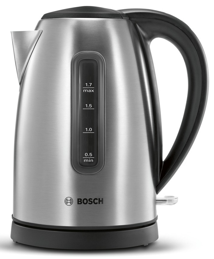 Электрочайник Bosch TWK7801 Мощность 2200 Вт Объем 1.7 л Материал корпуса Металл/Пластик Индикатор уровня воды Есть Защита от перегрева Есть Функции Автоматическое отключение после закипания Отсек для кабеля Есть Особенности Кнопка открывания крышки Включатель/выключатель с подсветкой Безопасная система блокировка крышки: прибор работает только при закрытой крышке Возможность вращения на 360 градусов Аксессуары Съемный фильтр против накипи Тип нагревательного элемента Скрытый (диск)