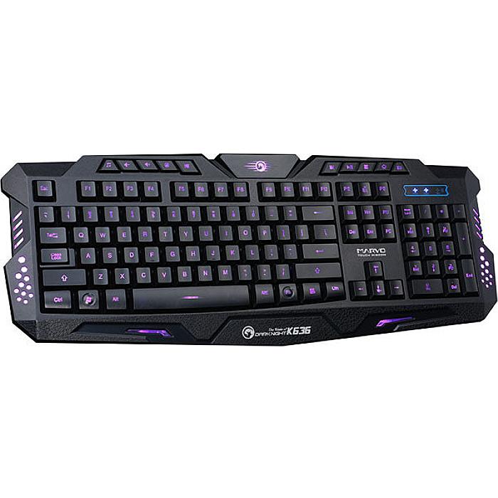 Клавиатура Marvo K636 Wired Gaming US LED Игровая мембранная клавиатура Marvo K636 выдержит нагрузку даже от самых интенсивных игровых состязаний и прослужит вам многие годы. Благодаря легкой конструкции Marvo K636 можно брать с собой на игры по сети и турниры. Нужные сочетания легко найти в процессе игры или даже в темноте — клавиши Marvo K636 снабжены тремя видами подсветки. Встроенные элементы управления аудио и мультимедиа позволяют начать воспроизведение, приостановить его, прекратить либо переключаться между звуковыми дорожками прямо с клавиатуры. Также можно настраивать громкость или отключать звук, не покидая игры. Совместимость с ОС: Windows XP, 2003, Vista, 7, 8, 10 Количество кнопок 114 Дополнительные функции 3 вида подсветки Интерфейс USB Тип упаковки Retail Длина кабеля 1.5 м Тип клавиатуры Мембранные Назначение Геймерские Совместимость с ОС Microsoft Windows Тип Клавиатуры
