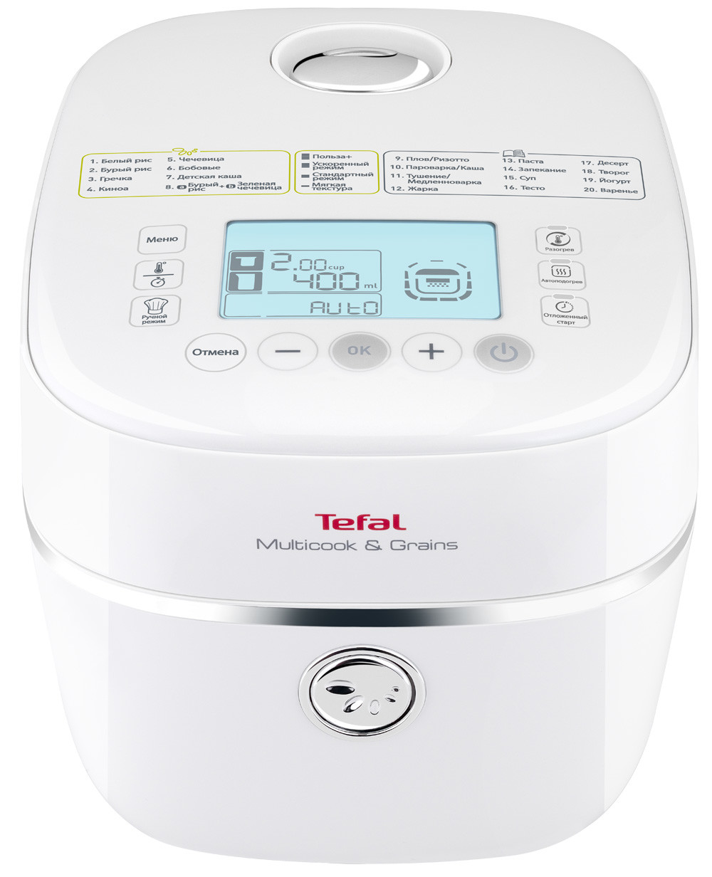 Мультиварка Tefal RK900132 Тип мультиварка Мощность 750 Вт Объем 4 л Материал корпуса пластик Покрытие чаши керамическое Внутренняя крышка есть Управление электронное 3D нагрев есть Технология Sous-Vide нет Автоматических программ 28, включая: выпечка, каша, крупа, тушение, приготовление на пару, плов, жарка, йогурт, паста Максимальное время установки таймера 24 ч Ручная регулировка температуры, времени приготовления Поддержание тепла есть Отложенный старт есть
