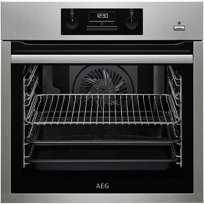 Духовой шкаф AEG BES351110M Тип духовки: Электрическая с конвекцией Дизайн духовки: Современный дизайн Объем духовки: 71 л Количествово режимов работы духовки: 8 режимов приготовления (1 режим приготовления на пару) Максимальная температура: 275 °C Цвет: Нержавеющая сталь ЭнергопотреблениеКласс энергопотребления: A+ Максимальная мощность подключения: 3,5 кВт УправлениеТип управления: Электронное управление (кнопки) + поворотные регуляторы Утапливаемые поворотные регуляторы: Есть Вертел: Нет Таймер: Электронный Часы: Есть Дисплей: Текстовый LCD дисплей Система безопасностиБлокировка управления ''защита от детей'': Нет Блокировка двери: Нет Уникальные особенностиКонвекция: Вентилятор с нагревателем Гриль: Электрический Плавное закрывание двери: Есть Термозонд: Нет Тип очистки духовки: Aqua Clean (отчистка паром) КомплектацияКоличество протвеней: 2 Количество решеток: 1 Телескопические направляющие: Одноуровневые РазмерыГабаритные размеры (ВxШxГ): 59.4 х 59.5 x 56.7 см