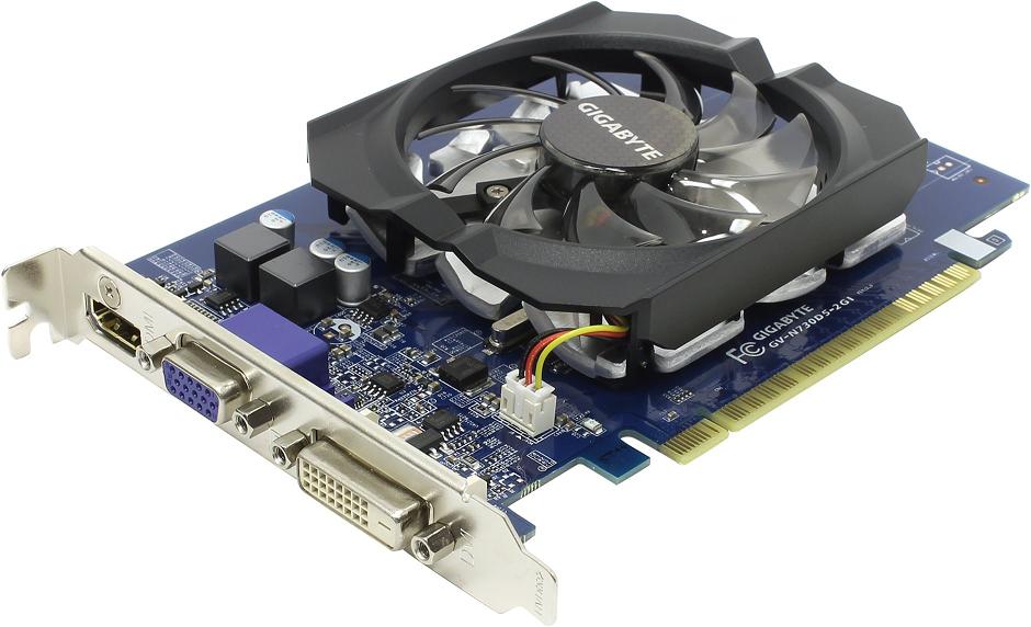 Видеокарта Gigabyte GV-N730D3-2GI SALE factory refurbished Видеокарта GIGABYTE GeForce GT 730 [GV-N730D3-2GI] с объемом видеопамяти в 2 ГБ значительно увеличит возможности домашней станции или игрового компьютера в плане обработки сложной графики. Она позволит обрабатывать видео с высоким битрейтом или запускать в высоком качестве современные, требовательные к компьютерному оборудованию видеоигры. Карта обеспечит примерно втрое более эффективную работу с графическим контентом по сравнению со встроенным графическим процессором. Установить GIGABYTE GeForce GT 730 [GV-N730D3-2GI] можно в системные блоки с мощностью блока питания от 300 Вт, собственный часовой расход энергии у карты невелик и не превышает 25 Вт. На карте смонтирован единственный осевой вентилятор, который уверенно справляется с отводом от нее излишнего тепла. Эта компактная и производительная видеокарта, отличающаяся также доступной ценой, снабжена видеовыходами DVI, HDMI, D-Sub, она позволяет одновременно подключить сразу три монитора. Модель GIGABYTE GeForce GT 730 Цвет черный, синий Подсветка элементов видеокарты нет Линейка графических процессоров GeForce Графический процессор GeForce GT 730 Поддержка стандартов DirectX 11.2, OpenGL 4.4 Количество видеочипов 1 Технологический процесс 28 нм Минимальная частота работы видеочипа 902 МГц Турбочастота нет Количество универсальных процессоров 384 Число текстурных блоков 16 Число блоков растеризации 8 Версия шейдеров 5.0 Объем видеопамяти 2 ГБ Тип памяти DDR3 Эффективная частота памяти (МГц) 1800 МГц Разрядность шины памяти 64 бит Максимальная пропускная способность памяти 14.4 Гбайт/сек Интерфейс подключения PCI-E Версия PCI Express 2.0 Поддержка мультипроцессорной конфигурации не поддерживается Количество подключаемых одновременно мониторов 3 Видео разъемы HDMI, VGA (D-Sub) Максимальное разрешение 4096x2160 Необходимость дополнительного питания нет Разъемы дополнительного питания нет Максимальное энергопотребление 25 Вт Рекомендуемый блок питания 300 Вт Система охлаждения Тип охлаждения активное воздушное Тип и количество установленных вентиляторов 1 осевой Низкопрофильная карта (Low Profile) нет Количество занимаемых слотов расширения 1 Длина видеокарты 167 мм Толщина видеокарты 27 мм Комплектация документация, диск с ПО