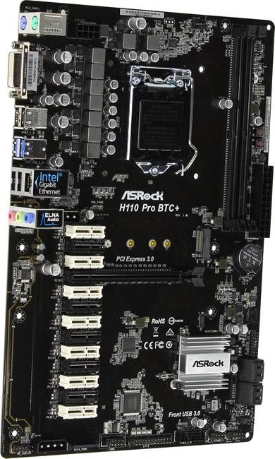 Материнская плата ASRock H110 PRO BTC+, S1151 (Intel H110, ATX) материнская плата форм-фактора ATX сокет LGA1151 чипсет Intel H110 2 слота DDR4 DIMM, 2133-2400 МГц разъемы SATA: 6 Гбит/с - 4
