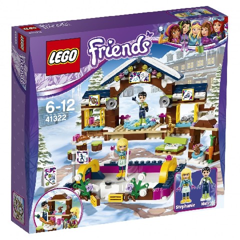 Snow Resort Ice Rink Lego Friends "Горнолыжный курорт: каток" Повеселись с друзьями на катке на горнолыжном курорте! Послушай, как Нейт играет на саксофоне на сцене, потом помоги ему взять на прокат пару коньков и покатайся вместе со Стефани. Отдохни за столиком, перекуси солёными крендельками и подружись с милым кроликом. Установи на катке хоккейные ворота и посмотри, как Стефани и Нейт пытаются забить шайбу! Количество деталей: 307 Рекомендуемый возраст: от 6 до 12 лет