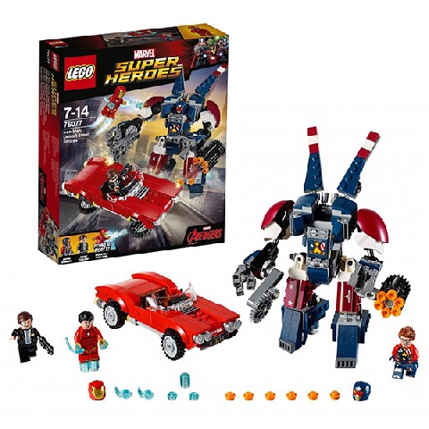 Iron Man: Detroit Steel Strikes LEGO Super Heroes "Железный человек: Стальной Детройт наносит удар" Осторожно! Стальной Детройт, Джастин Хаммер уже следует по горячим следам Агента Колсона на своём летающем роботе! Железному человеку пора вылетать на подмогу и обезвредить механического громилу мощнейшим Энергетическим потоком. Только берегитесь бензопилы и шипомёта, выстреливающего одновременно шестью шипами! Пока идет бой, переключи автомобиль Агента Колсона, в режим полёта, и быстро ускользни! Количество деталей: 377 Рекомендуемый возраст: 7 -14 лет