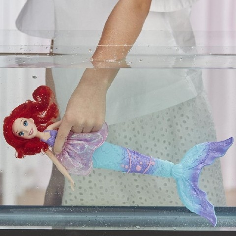 DPR SPLASH SURPRISE ARIEL Hasbro "Принцесса Ариель, превращающаяся из Русалки в девушку" Ариэль — главная героиня полнометражного мультфильма "Русалочка". Ариэль — младшая дочь морского короля Тритона. Наполни хвост Русалочки водой, под тяжестью воды хвост раскороется и Русалочка превратится в Ариэль. Прекрасным подарком Вашей девочке станет уникальная кукла- Диснеевская принцесса Ариэль, которая превращается из русалки в девушку. В комплекте: кукла, платье, хваст русалки. Размер куклы 28 см Рекомендуемый возраст: 3 года +