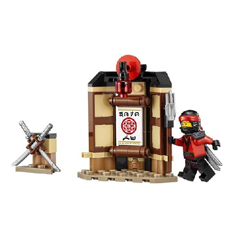 Spinjitzu Training LEGO Ninjago "Уроки Мастерства Кружитцу" В яркой красочной упаковке вы найдете детали, из которых сможете собрать тренировочный центр, где ниндзя оттачивают свое мастерство. Основная постройка набора - это стойка для оружия в восточном стиле, которую освещает красная подвесная лампа. Один из тренажеров – это Вин-Чун, традиционный деревянный манекен для отработки ударов руками. Он представляет из себя вертикальный столб с брусьями. Второй тренажер – это груша на выпуклом основании для отработки прыжков и ударов ногами. Также в наборе имеется совсем миниатюрная стойка для хранения клинков. Ниндзя одеты в традиционную одежду восточных воинов, их лица скрывает маска. Количество деталей: 109 Рекомендуемый возраст: 6 - 14 лет